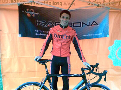 <2008.02>Last Sunday 17th of February, Miguel Angel Fidalgo won the most important Duathlon of Barcelona This Triathlete, will run all this year 2008 with a all complete assembled KARBONA bike. His Ge Lite will be seen in the most important races of Spain and the European Races.Trusting in all KARBONA components, is the first victory for the Zero System in Spain, though it won��t be the only one��